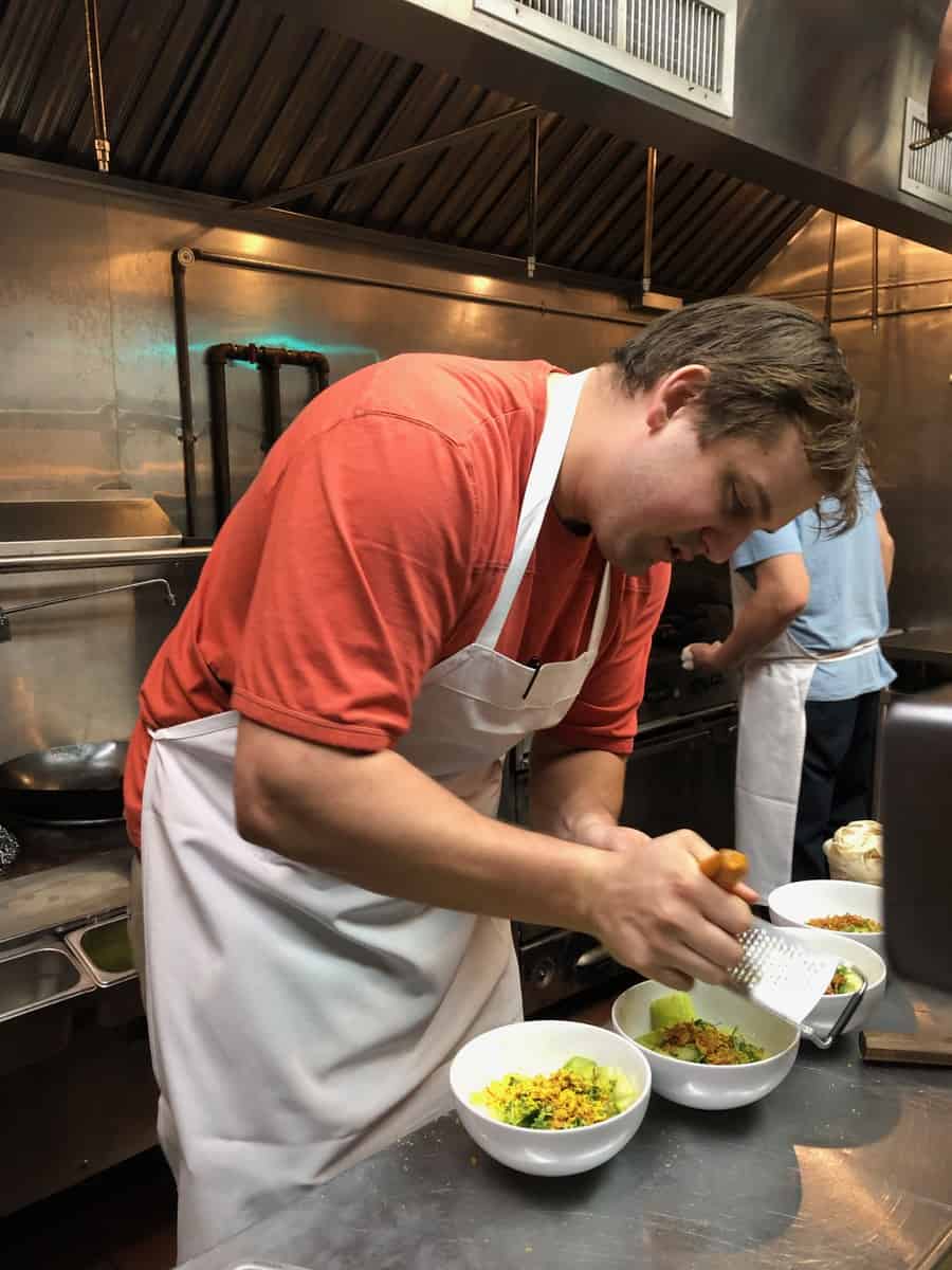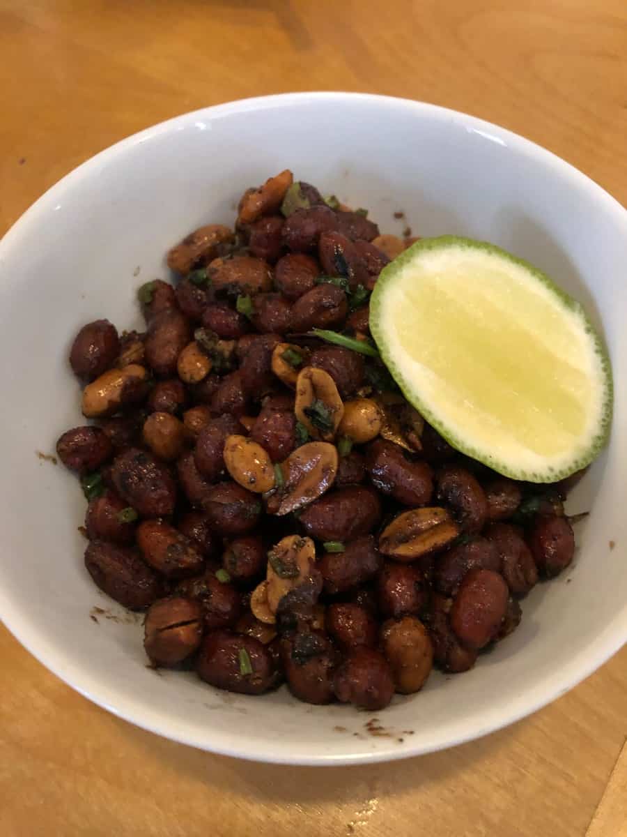 A lot of people are really into peeling shrimps and I totally understand that. But in Taiwan they fry the shrimps with the head and get the oil really hot. 350 not anything crazy. You take the shrimps and dredge them in a little sweet potato flour, and drop them in the hot oil maybe on a skewer.